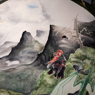 Visited home last weekend, and there I have all of my old, old art school paintings and such stored. There I painted a lot of things but my favorite is a narrative pentatych 140cm high and 160 cm wide when opened. It is hands on the biggest piece I’ve ever done! This is a detail of the biggest, central piece.